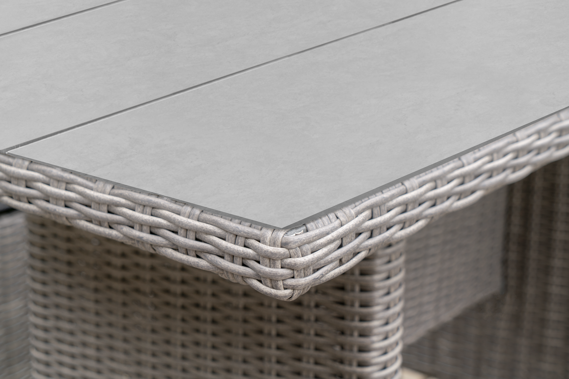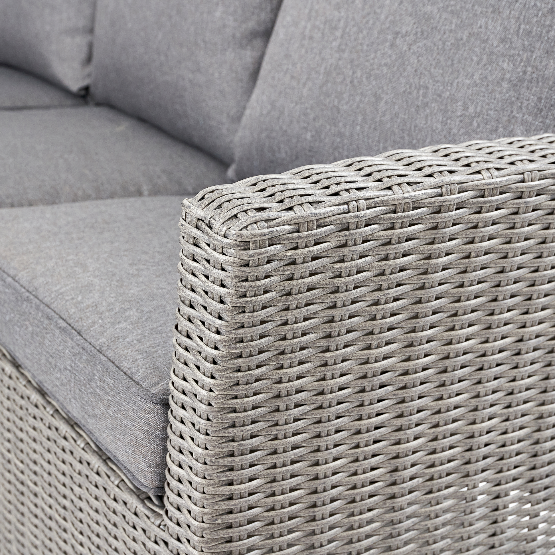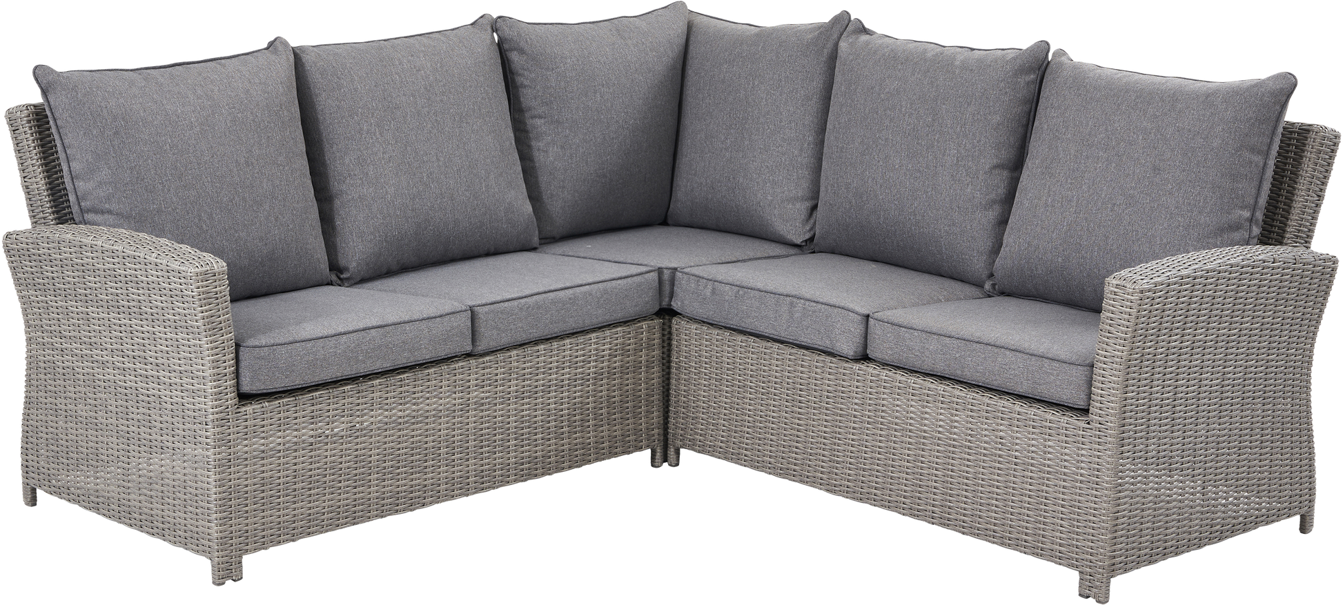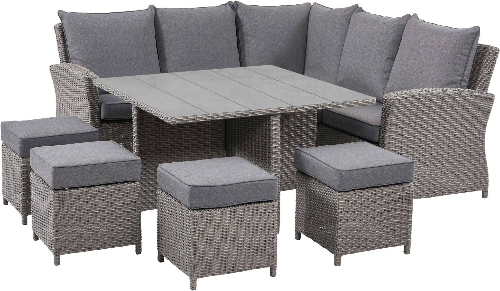 The Barbados Square Corner Seating Set is made from synthetic half round rattan weave finished in a slate grey, which is durable, weatherproof and UV protected, whilst retaining all aesthetic qualities of natural rattan. This relaxed dining outdoor furniture range also features a powder-coated, aluminium frame, which creates a high-quality finish. Using this strong, durable and weatherproof material further ensures that this set is both long-lasting and maintenance-free. The table is topped with Polywood, which is low maintenance, durable and retains all the aesthetic qualities of natural wood. All cushions are completely season proof and fire retardant; further ensuring that all details of this set are of the highest quality. Basic assembly is required.